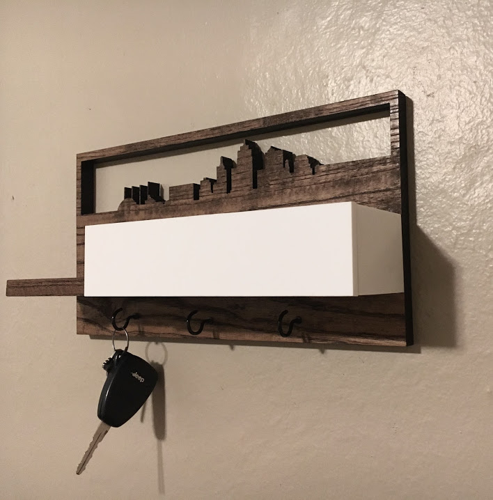 Kansas City Skyline Key Hook Shelf