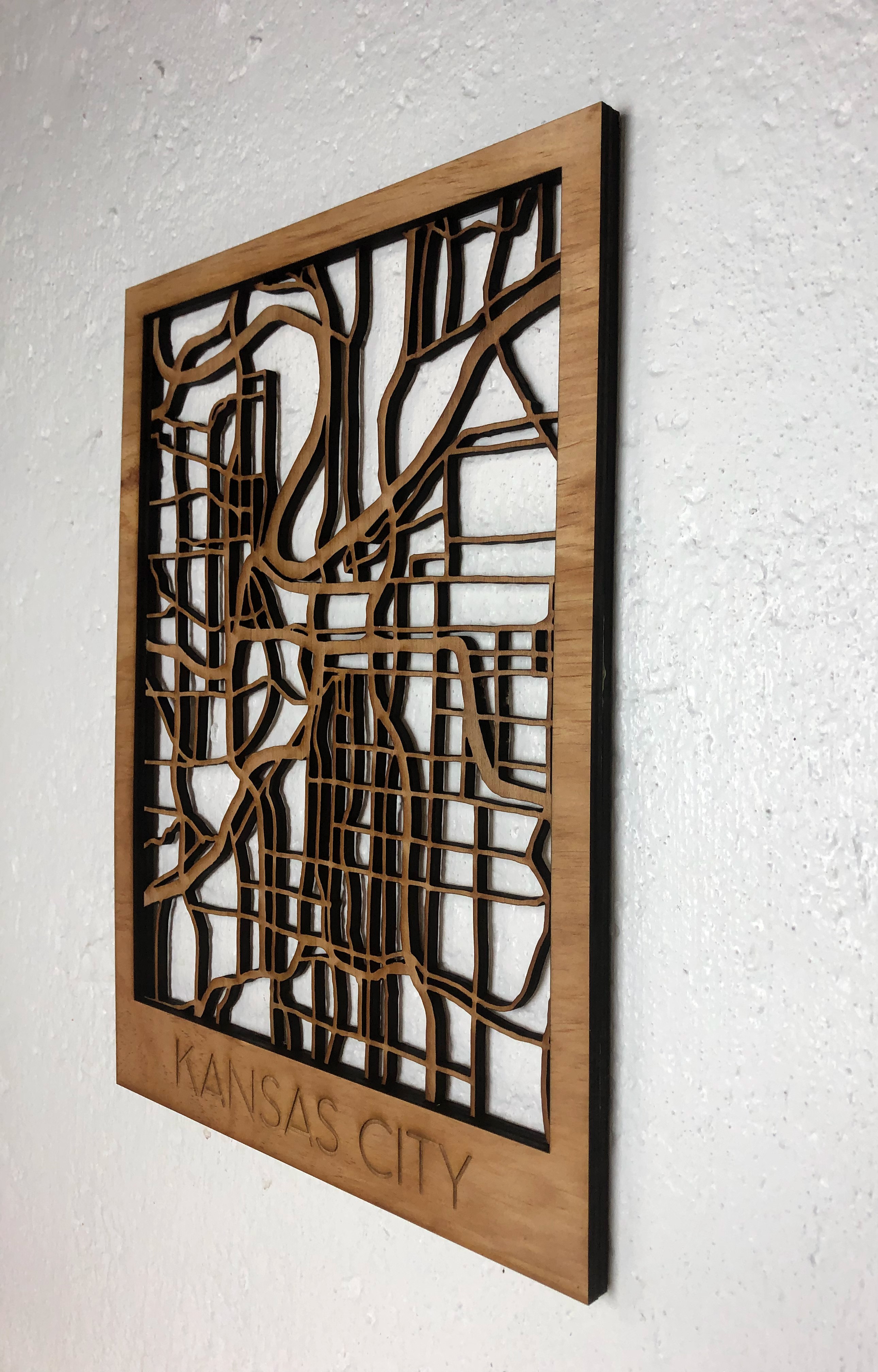 Map of Kansas City cut from plywood