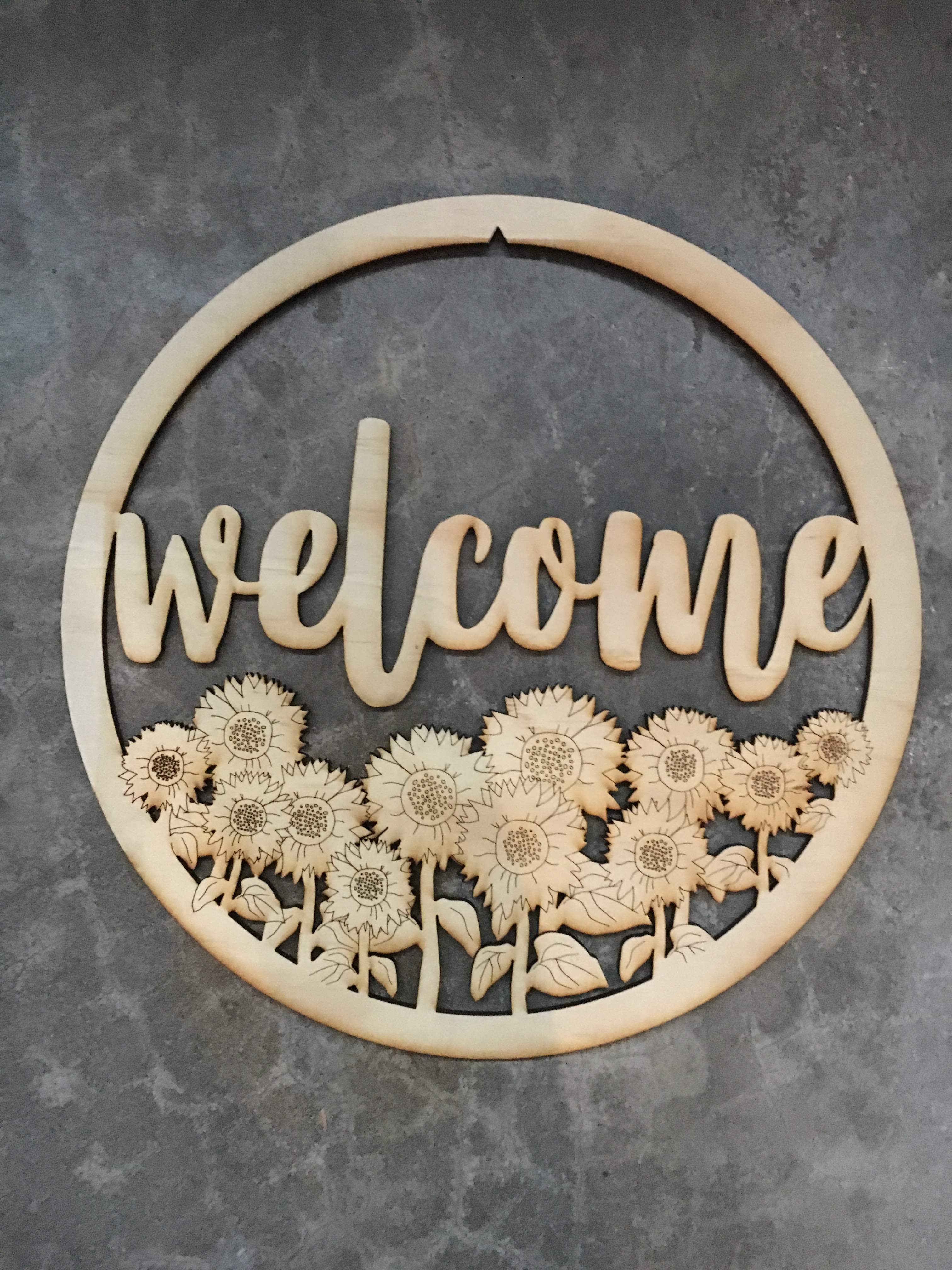 Front Door Welcome Sign with Sunflowers